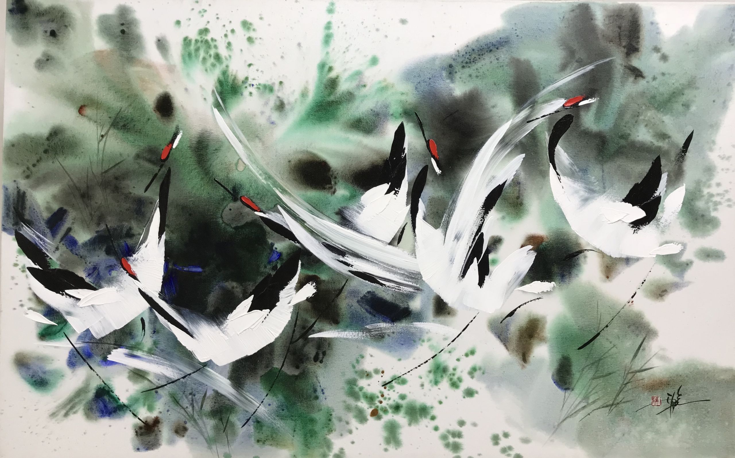 陈泇元 亚洲美术家协会新加坡分会长 陈泇元,新加坡著名艺术家,获英国伯明翰中央大学纯美术硕士、澳洲墨尔本大学纯美术学士及南洋艺术学院水墨画系学历。至今举办65场个展及百余次联展,足迹遍及新加坡、欧洲、英国、法国、中国及东南亚。其作品屡获殊荣,包括新加坡大华银行全国美术大奖、陈之初博士美术首奖、新航CAAS首奖、日本大阪市长奖、大阪府教育委员会奖、北京国际艺博会金奖、国际文化艺术交流贡献奖、北京国际艺术最具影响力艺术家奖、大阪府知事奖、2018义安特选卓越艺术家奖、2019金艺奖及2020日本外务大臣奖等。2023年应邀参加第十三届“翰墨传情”新加坡总统慈善画展。 《鹤舞千年》 布面油画 / 122cm X 76cm 作品荣获义安特选卓越艺术家奖