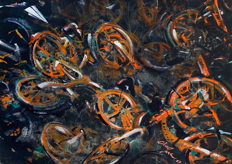 Through her self-developed technique of layering composite paper to create three-dimensional textures, Chai innovatively combines traditional printmaking methods with water-based acrylics, producing paintings that are rich, refined, and full of depth and visual vitality.