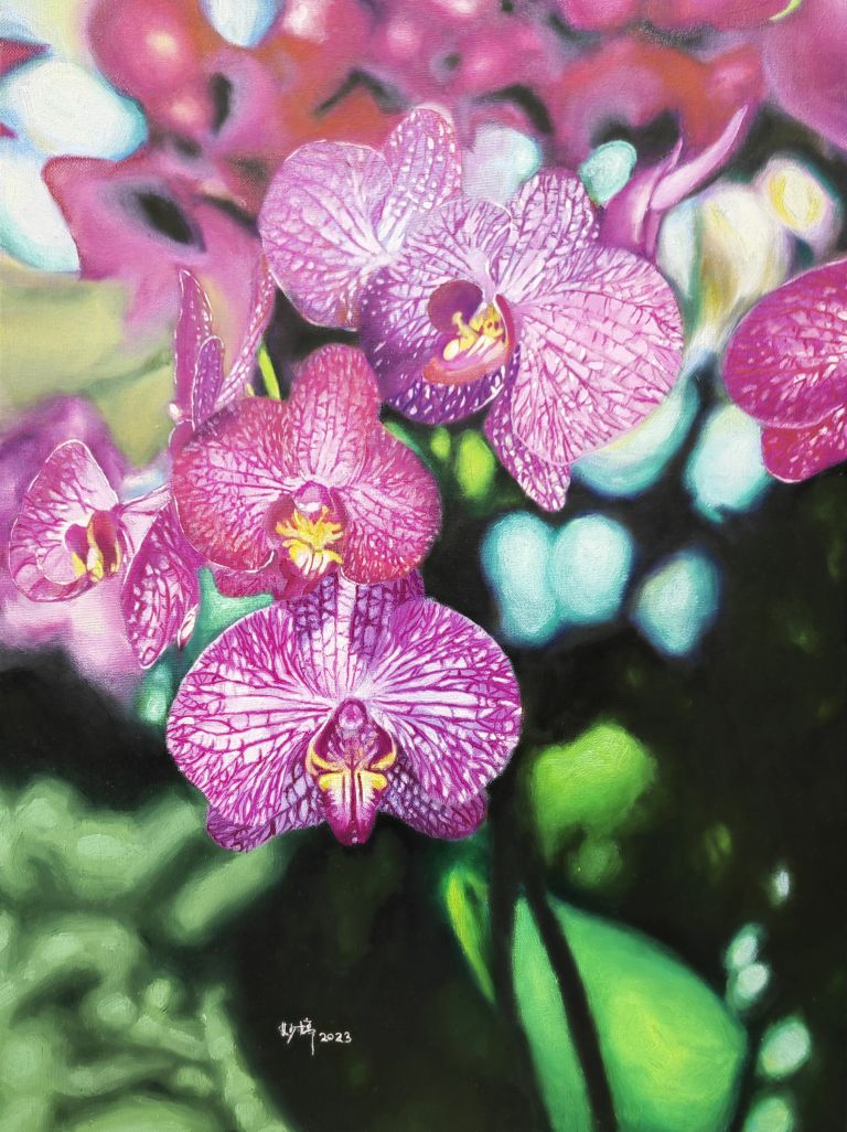 is an active participant in both local and international art exhibitions and associations. In 2019, she received the Excellence Award at the Kurume Group Exhibition in Fukuoka, Japan, with her work collected by the Kurume Art Museum. Since then, she has been invited to the Penang Hill Invitational Exhibition (2023), the Hari Landskap Silent Auction organized by the Penang State Government (2024), and was selected for the Penang Ferry Museum Exhibition (2025). Her works often draw inspiration from nature, blending cultural imagery to explore the harmony between life and the environment. They have been published in A Century of Ink Traces and Chaoqing Moy i, a Malaysian Teochew artists’ anthology. For Yu, the meaning of art lies in its constant reminder: life is not only about survival, but also about poetry and creation.