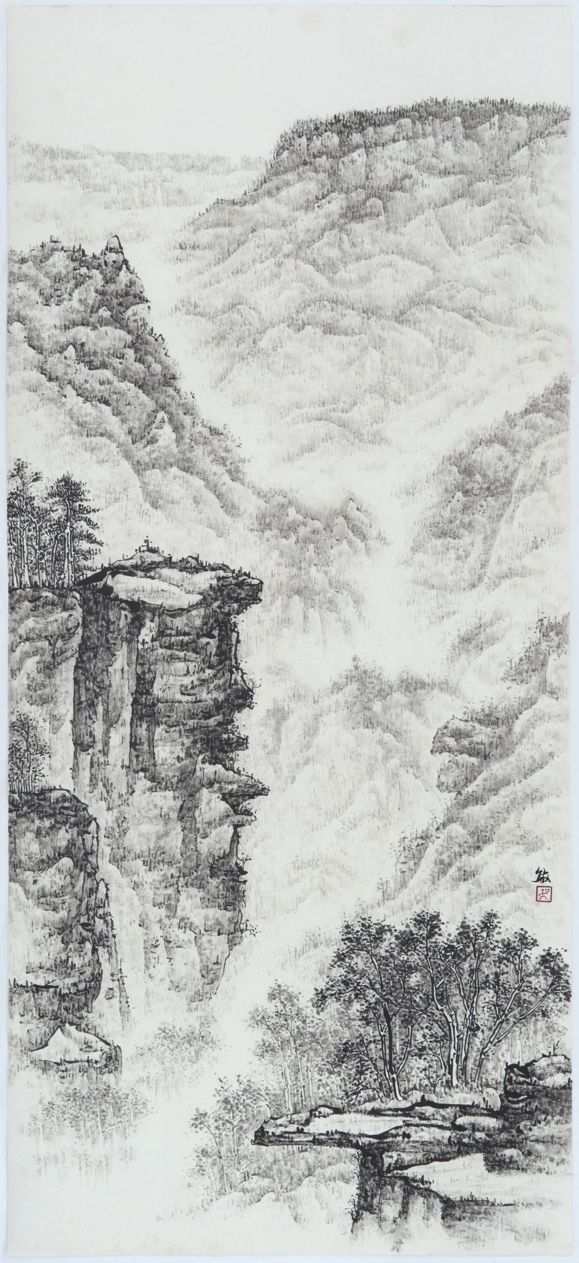 吴敏仪 中国香港 亚洲美术家协会会员 毕业于香港大学专业进修学院(HKU SPACE)中国绘画文凭课程,师从熊海、钟育淳、何才安诸师,专攻山水与花鸟画。作品多次入选重要展览与比赛,包括2024年一新美术馆「西源里选画」、2020年「石景宜博士杯」佳作奖,以及2019、2022、2023和2025年入围「大华银行年度水墨艺术大奖」最终评审;作品《山舞银蛇》亦入选中国对外友协主办「庆新年迎冬奥国际名家艺术展」。 《庐山烟雨》 水墨纸本 / 107.5cm x 48.5cm 创作年代:2023入选2024年一新美术馆开幕特别展览“西源里选画”