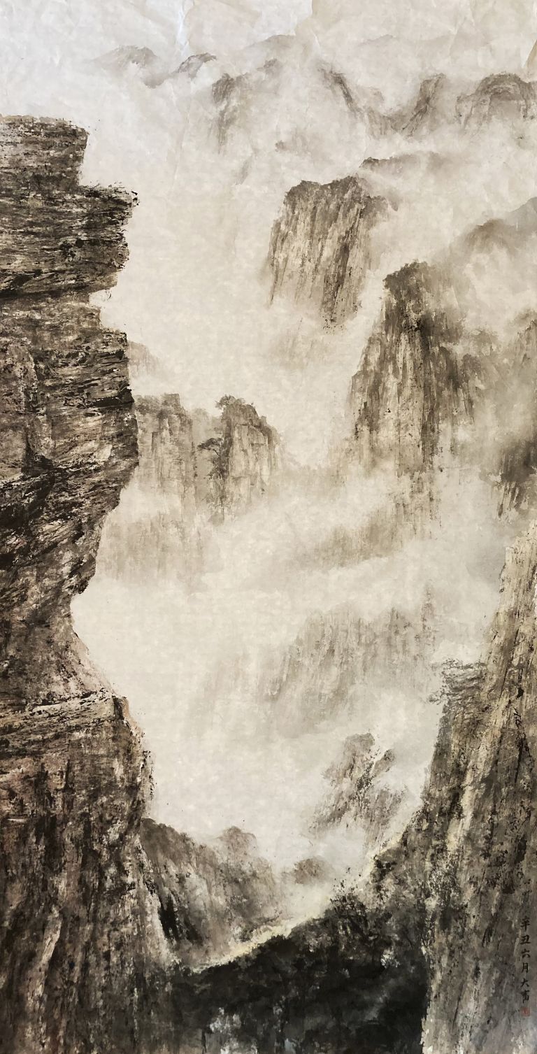 张大富 中国香港 亚洲美术家协会会员 张大富,香港艺术家。2013年随杨建法老师习岭南画,2019年以优异成绩修毕中文大学专业进修学院《中国水墨画》课程;2020年随著名画家沈平习水彩,2021年完成香港大学专业进修学院《中国山水画文凭》课程。作品《冰川》入选全球水墨画大展五百强,并多次在中、日、韩、意、澳及港澳地区展出。2021年举办个展《墨韵传情——张大富作品展》,同年获“瀚墨多彩·闪亮香江”金奖;2022年获香港青年水彩画精品展一等奖。现为香港美协、今画会、国际岭南画派学会会员,青藤书画会主席。 《王莽嶺(一) 》 水墨纸本 / 180cm x 97cm 创作年代: 2022作品曾在香港机场博览馆展出