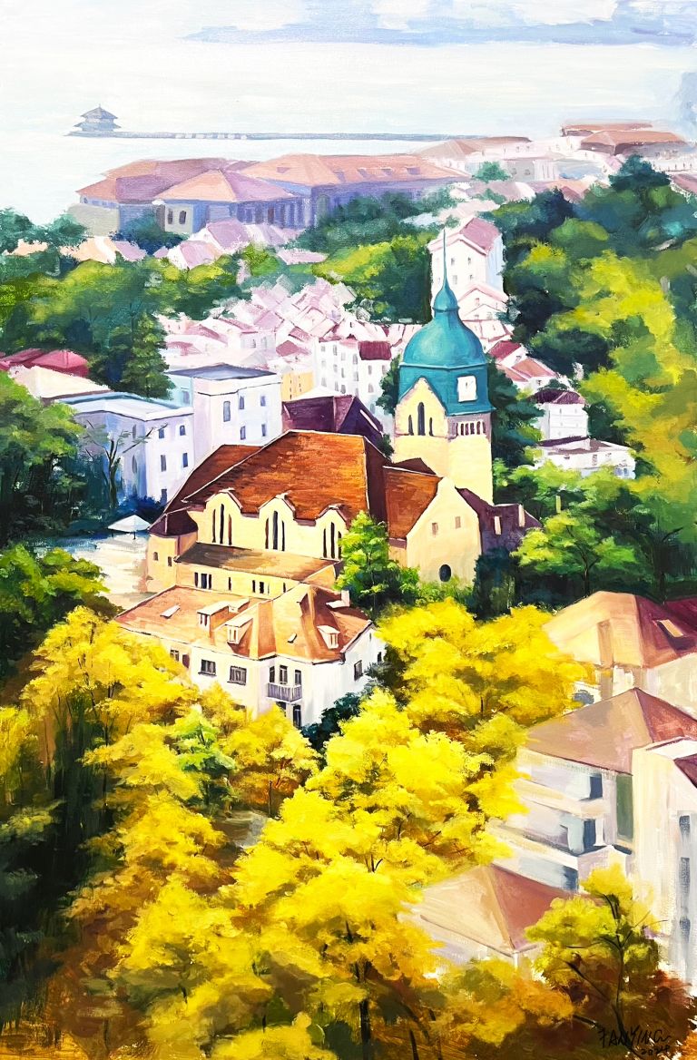 樊莹 亚洲美术家协会中国分会秘书长 樊莹,来自北京,毕业于北京林业大学,艺术硕士,主修装饰艺术与设计,师从著名油画家刘长宜教授。现任青岛市北艺术家协会常务理事兼副秘书长,系青岛圆梦画廊、圣艾尔美术馆驻馆画家及青岛画点画吧原创艺术工作室主创艺术家。她的作品多次入选重要国际展览:如2020第三届青岛国际当代艺术展、2022第五届青岛国际当代艺术展、2023新加坡第12届亚洲艺术联盟展、2023青岛国际当代艺术双年展、2024青岛国际名家邀请展,以及2025中国北京“京韵采风国际艺术交流展”。其油画以鲜明的色彩与独特的构图展现城市与人文之美,广受好评。 《城之韵》 油画 / 120cm x 80cm 创作年代: 20222022年11月油画《城之韵》入选2022第五届青岛国际当代艺术展